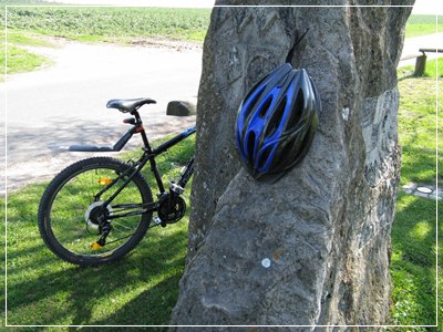 ![]() Fahrrad steht in Oberfranken, Helm hängt in Unterfranken |
