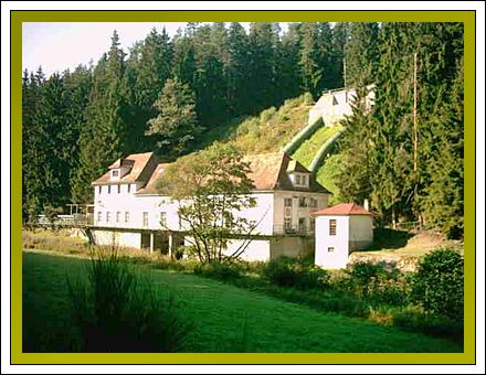 ![]() Kraftwerk Hirschsprung Hier stürzt das Wasser 30m tief auf 4 Turbinen mit insgesamt 3150 PS |